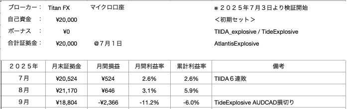 9月はAUDCADの損切りがあり、マイナス収支でした。