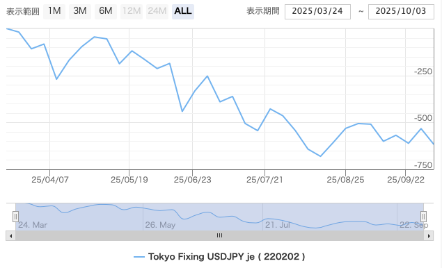 【Tokyo Fixing USDJPY je ゴトー日モード】