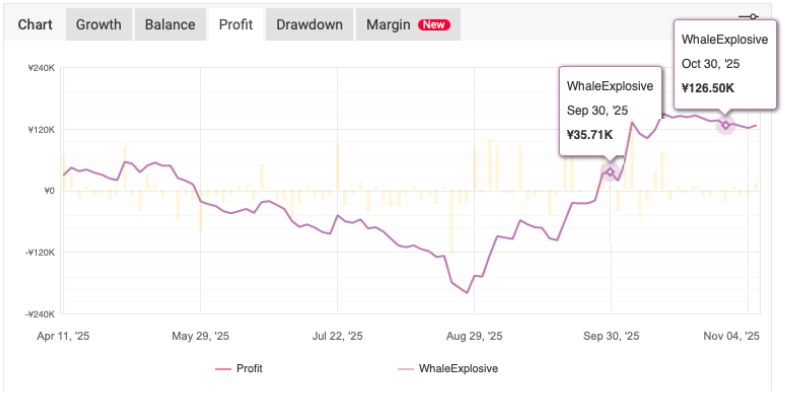 みーくんさんのXでは、10月は「WhaleExplosive」が一気に利益を積み上げた、とのこと。