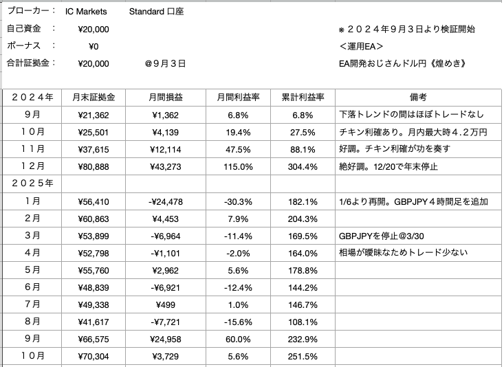 とゆうわけで、10月の収支報告です。EA選びのご参考になれば幸いです。