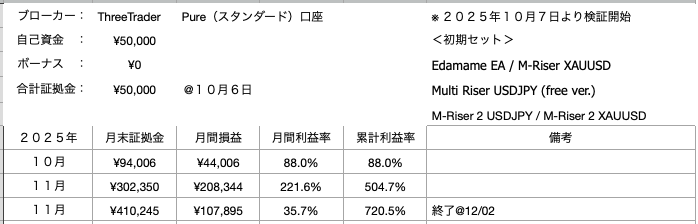 期間 :2025年10月7日 〜 12月2日 (=1.8ヶ月)