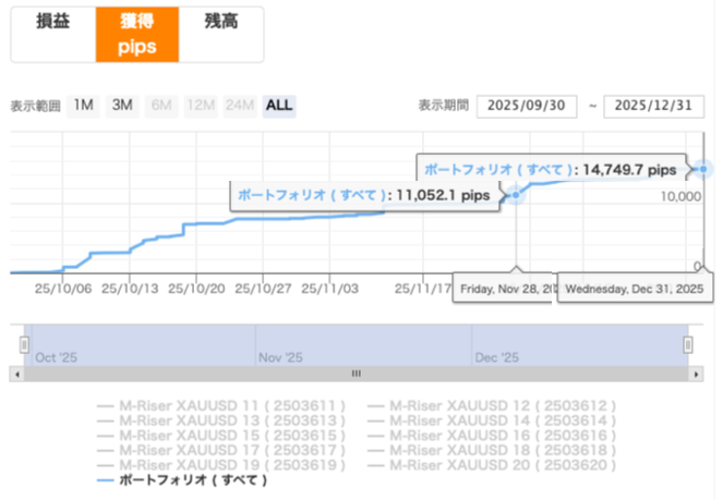 2025年の下旬は、多くのEAにとって稼ぎどきになったみたいですね。テクニカルが効きやすい相場環境だったということでしょうか。