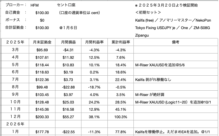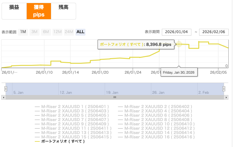 さて。これまで常勝でブイブイいわせていた「M-Riser XAUUSD」が1月は月末調整でガッツリやられ、ついにMVPの座を明け渡すことに。
