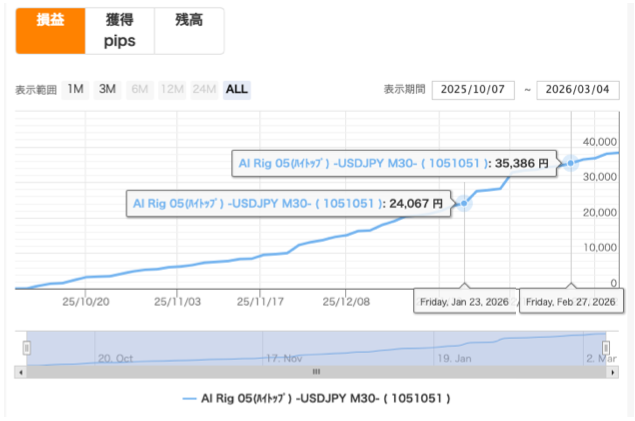 <参考:AI Rig 05(ハイトップ) -USDJPY M30- リアルタイム公式フォワード>